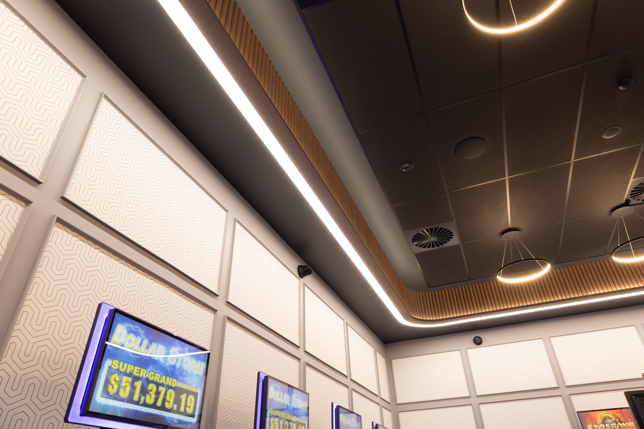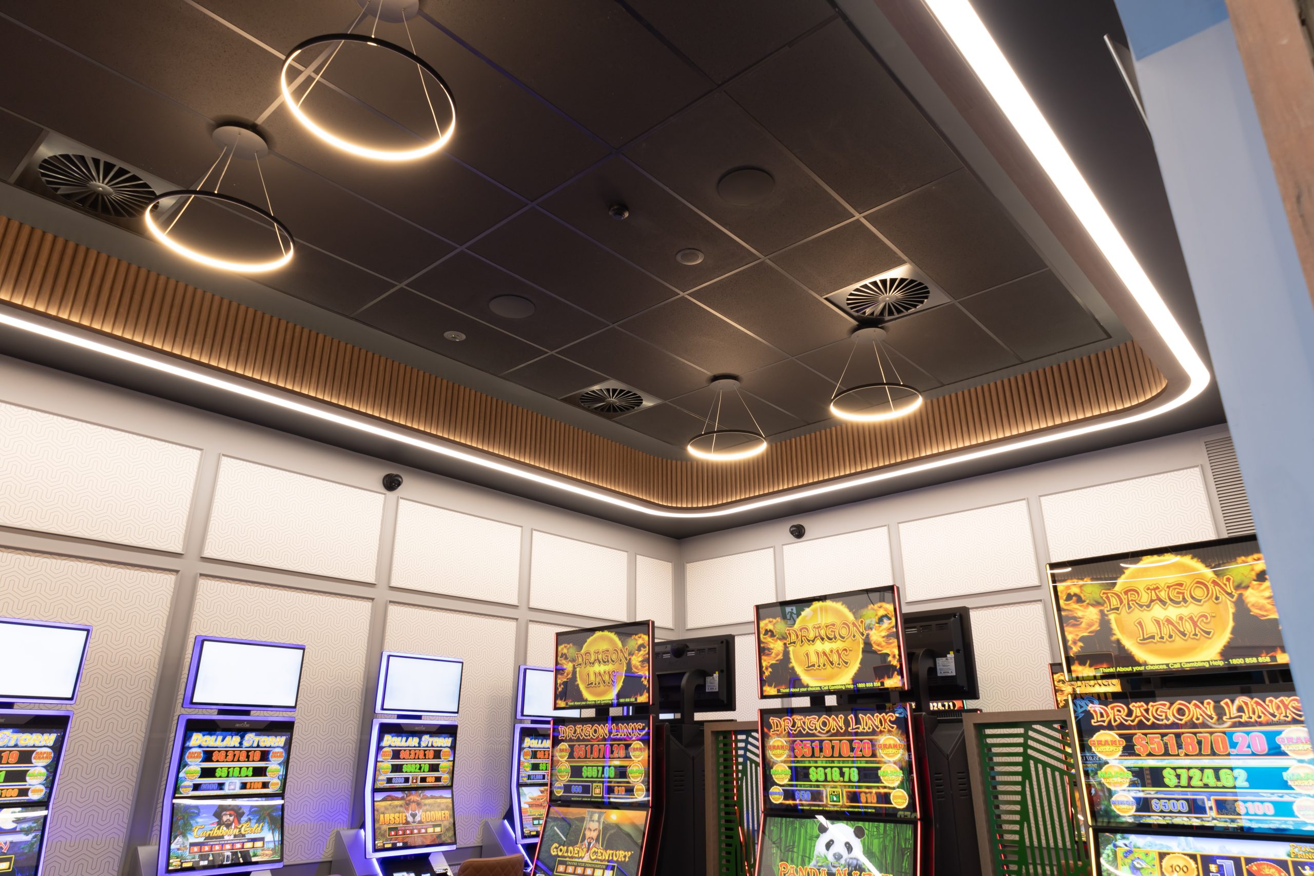 We also carried out modifications to the existing gaming switchboard, along with the installation of new submains to accommodate increased load demands and streamline power distribution across the upgraded spaces. Emergency exit signage and upgraded power and communications infrastructure rounded out this high-impact hospitality fitout.