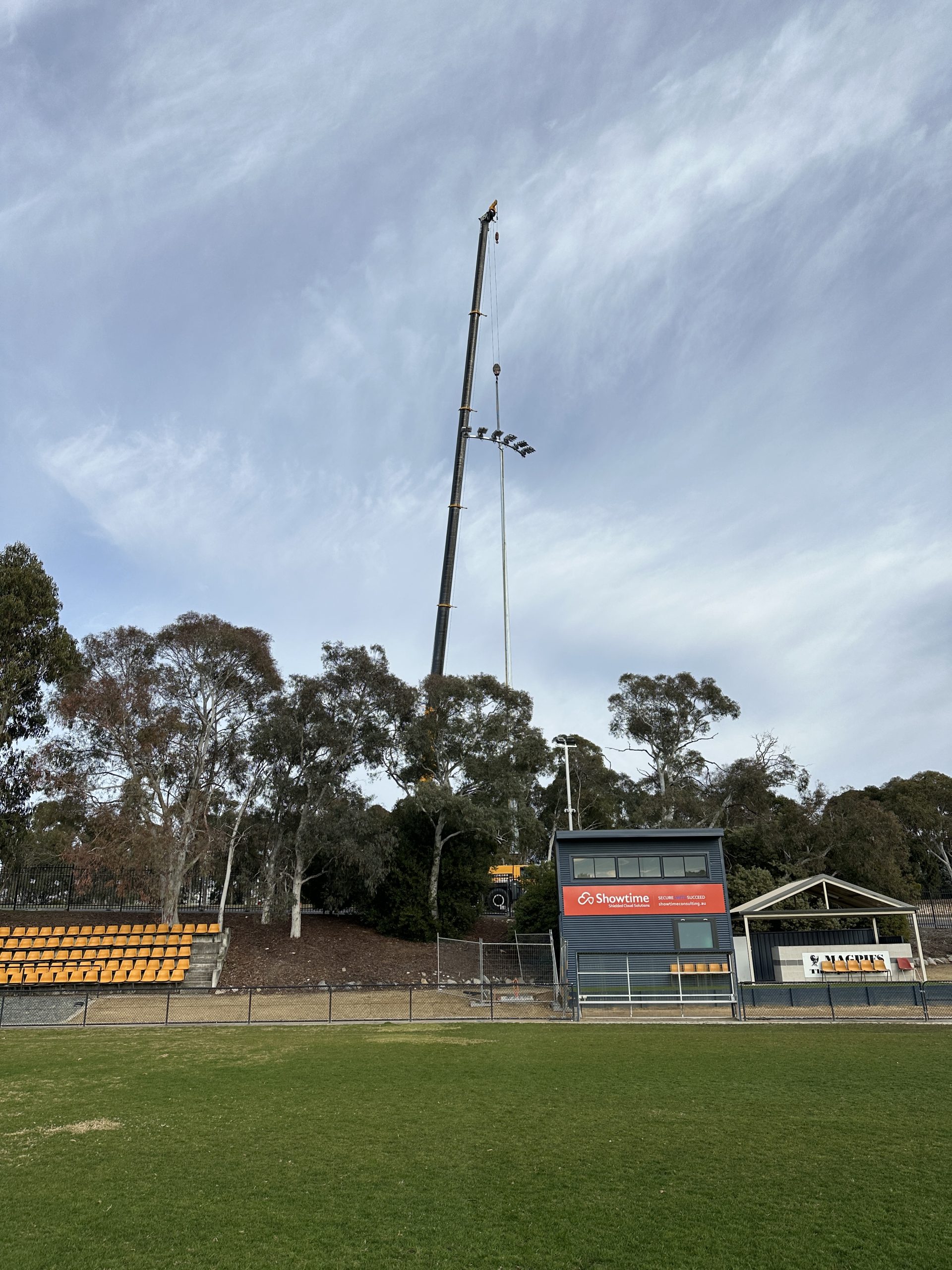 The completion of our latest sports lighting upgrades saw the removal of four existing 18m poles & installation of six 27m poles all whilst maintaining and ensuring there was no disruption to the belconnenfc training schedules. The field will now host night time play for both AFL and Cricket, completed in time to ensure the belconnenfc are well prepared for multiple finals appearances this weekend. Darian & the team completed this to perfection.